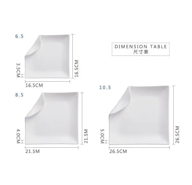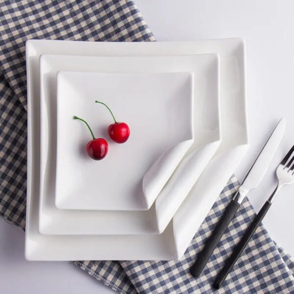 Multifunctional Square Plates: These porcelain dinner plates are not only suitable for pasta, salad, but also for steak, snacks, and Pizza. For family dinners, restaurant or events.